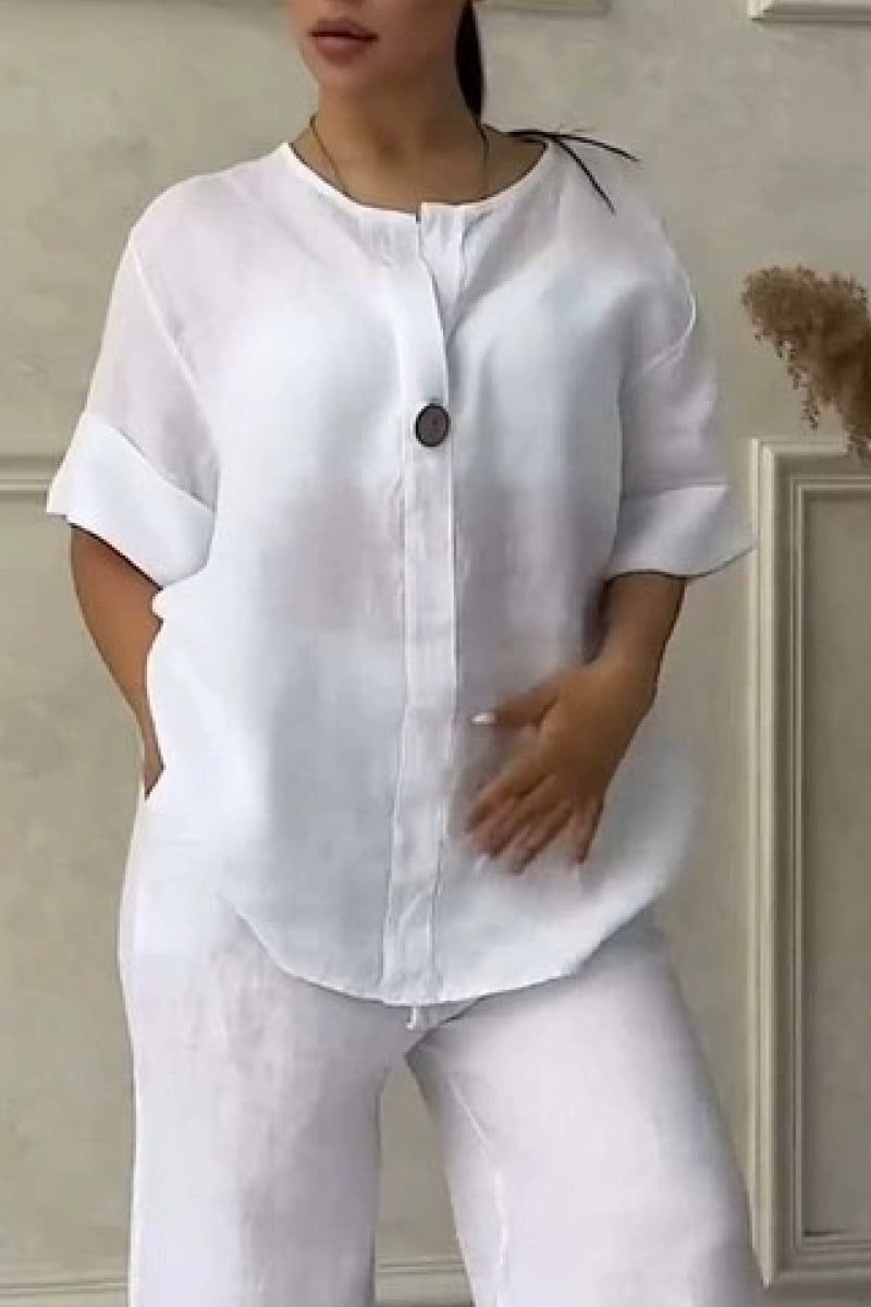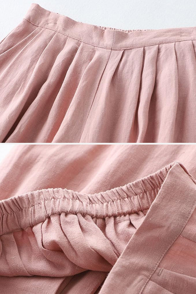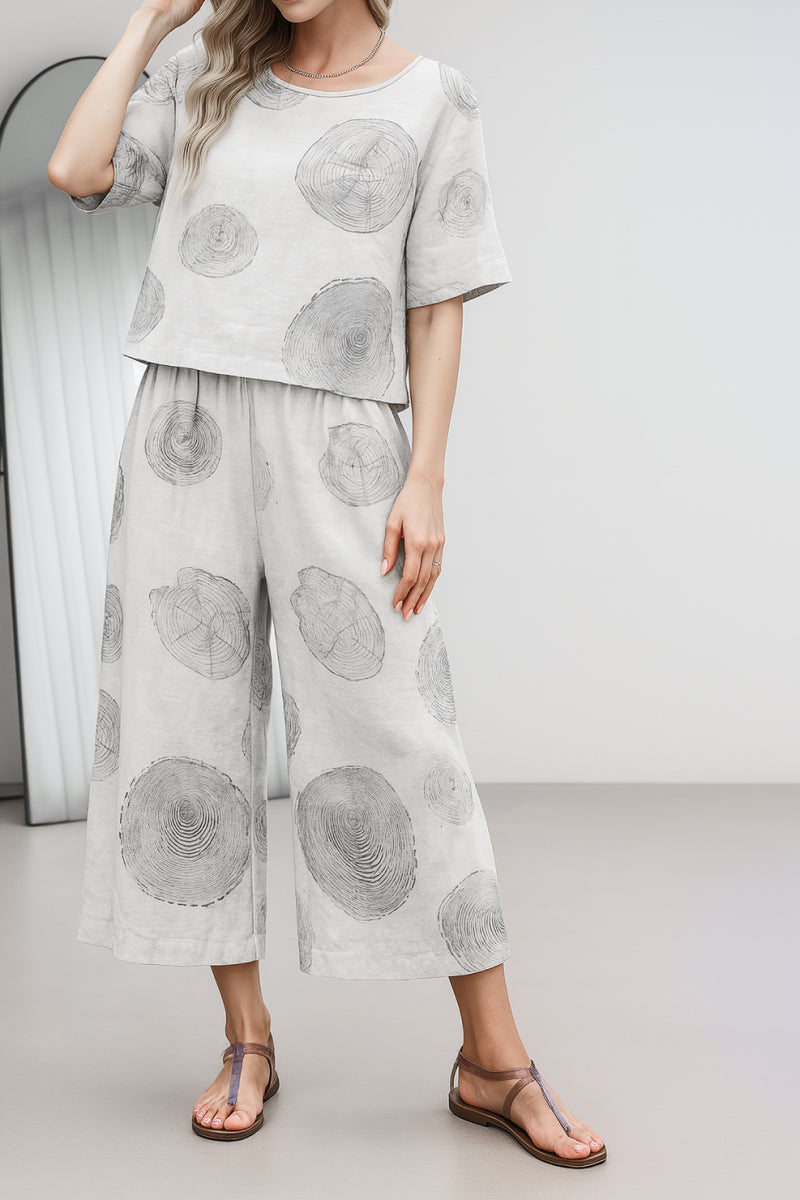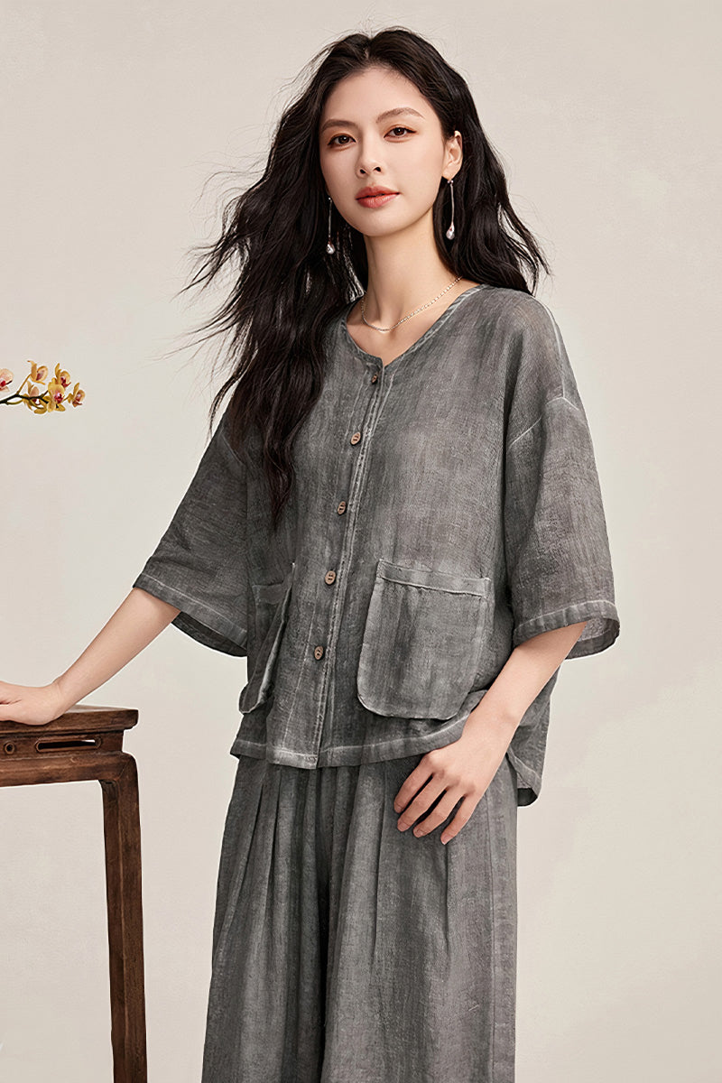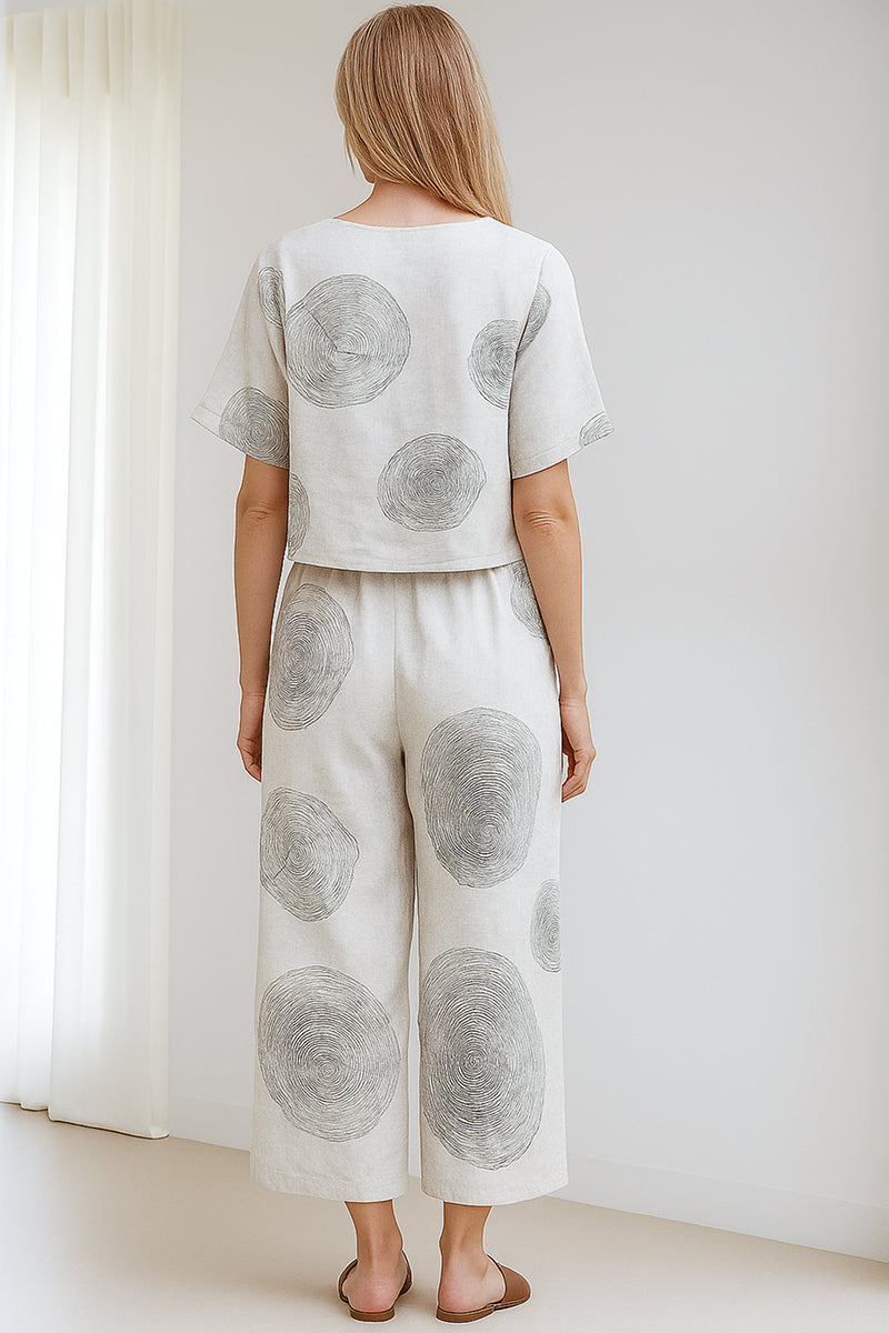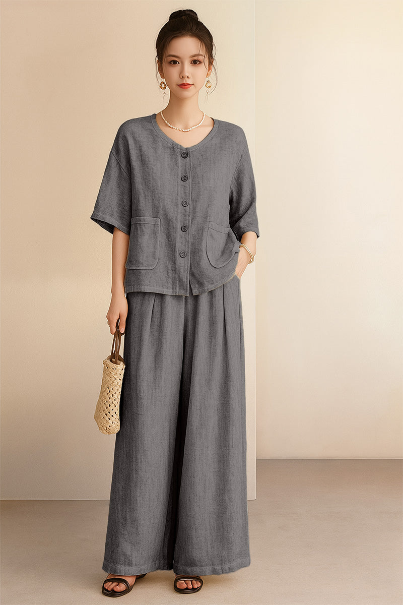Linen and Cotton Loose Floral Short Sleeves Two-Piece Set
