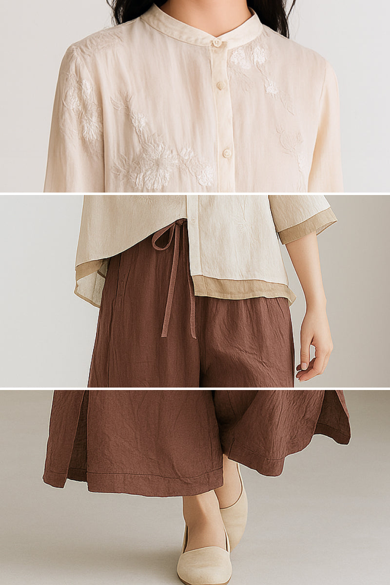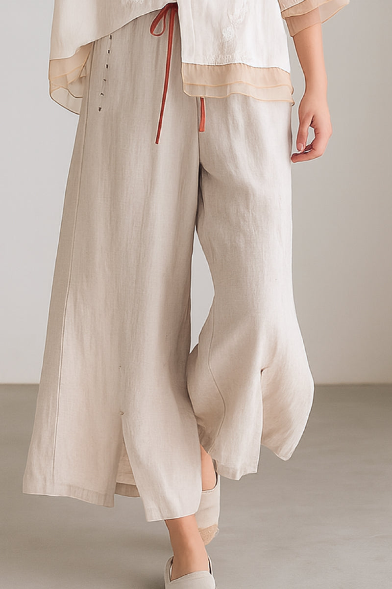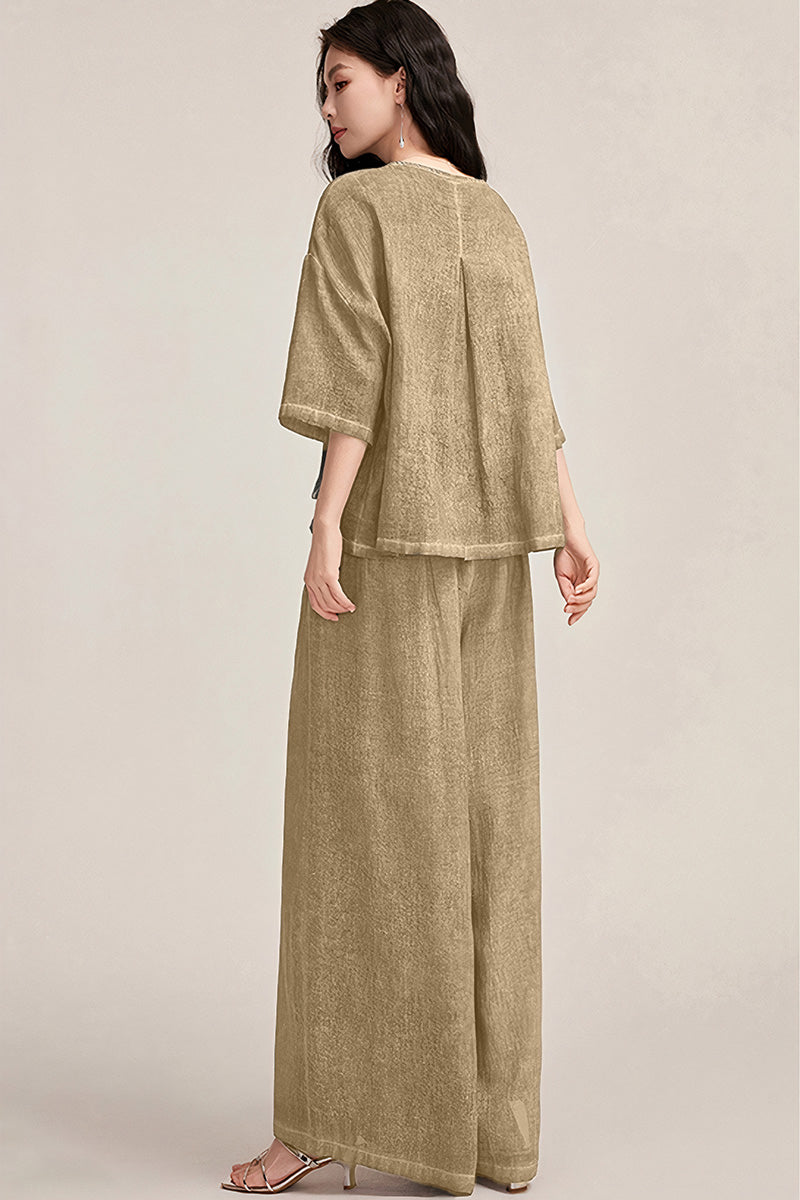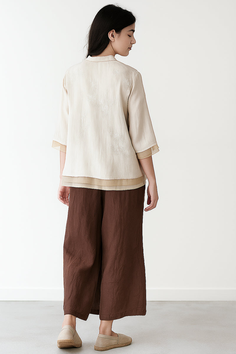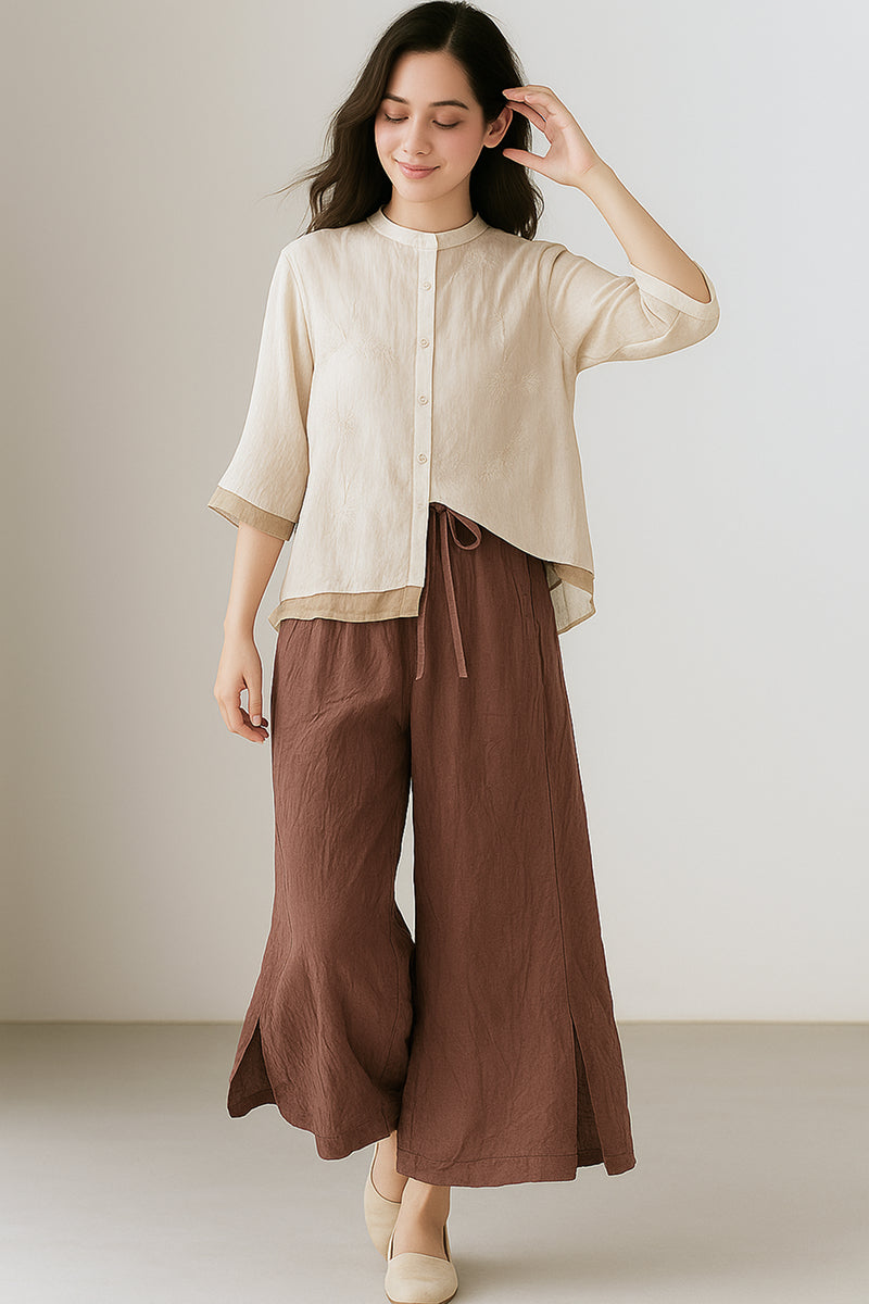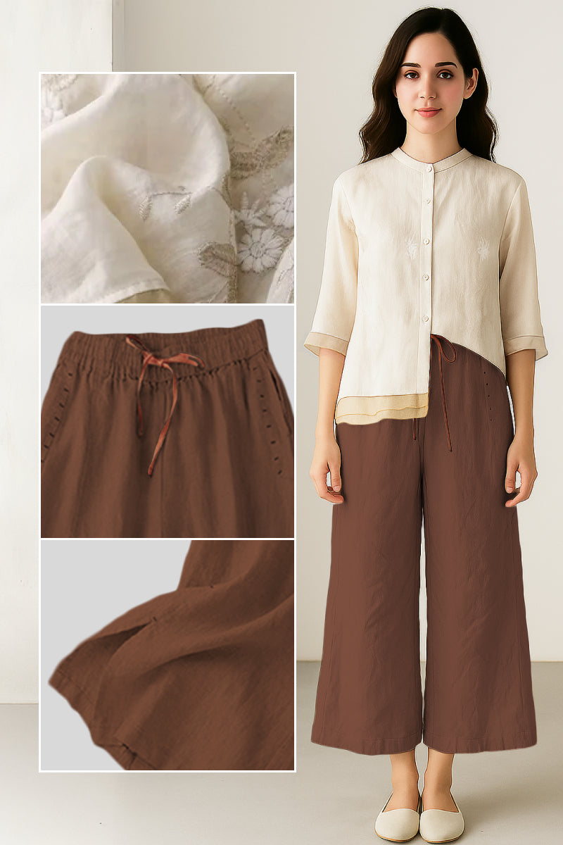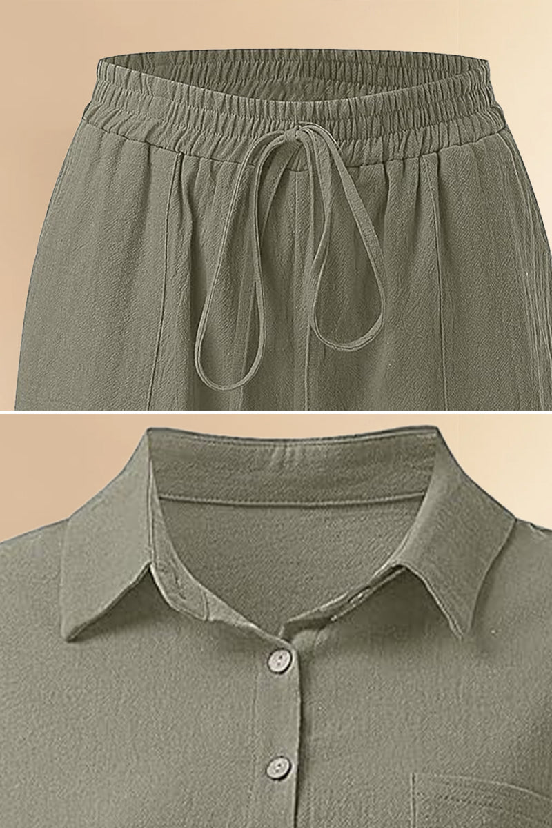 Linen and Cotton Loose Floral Short Sleeves Two-Piece Set