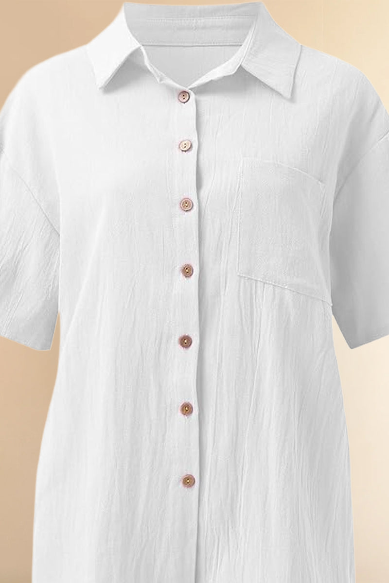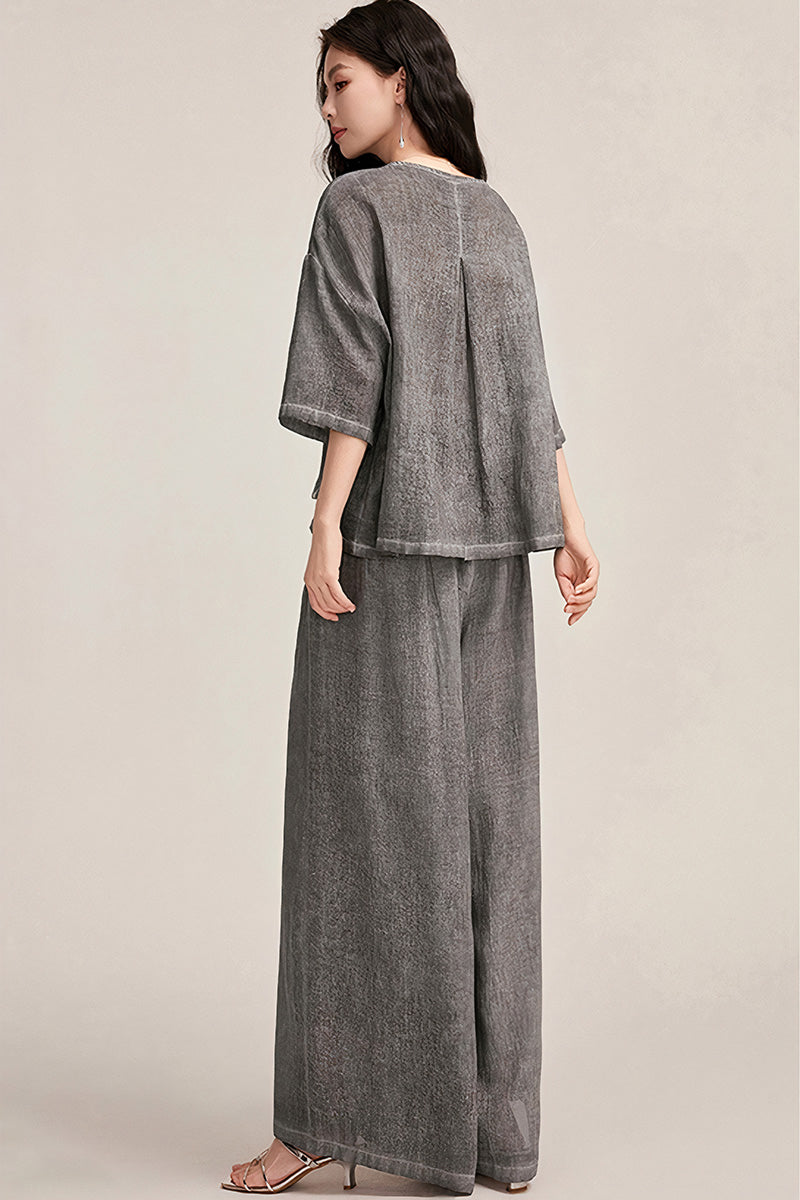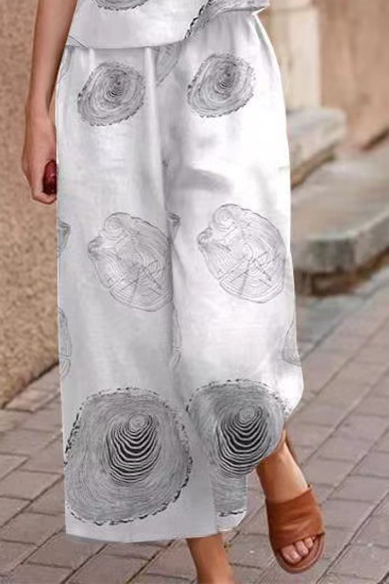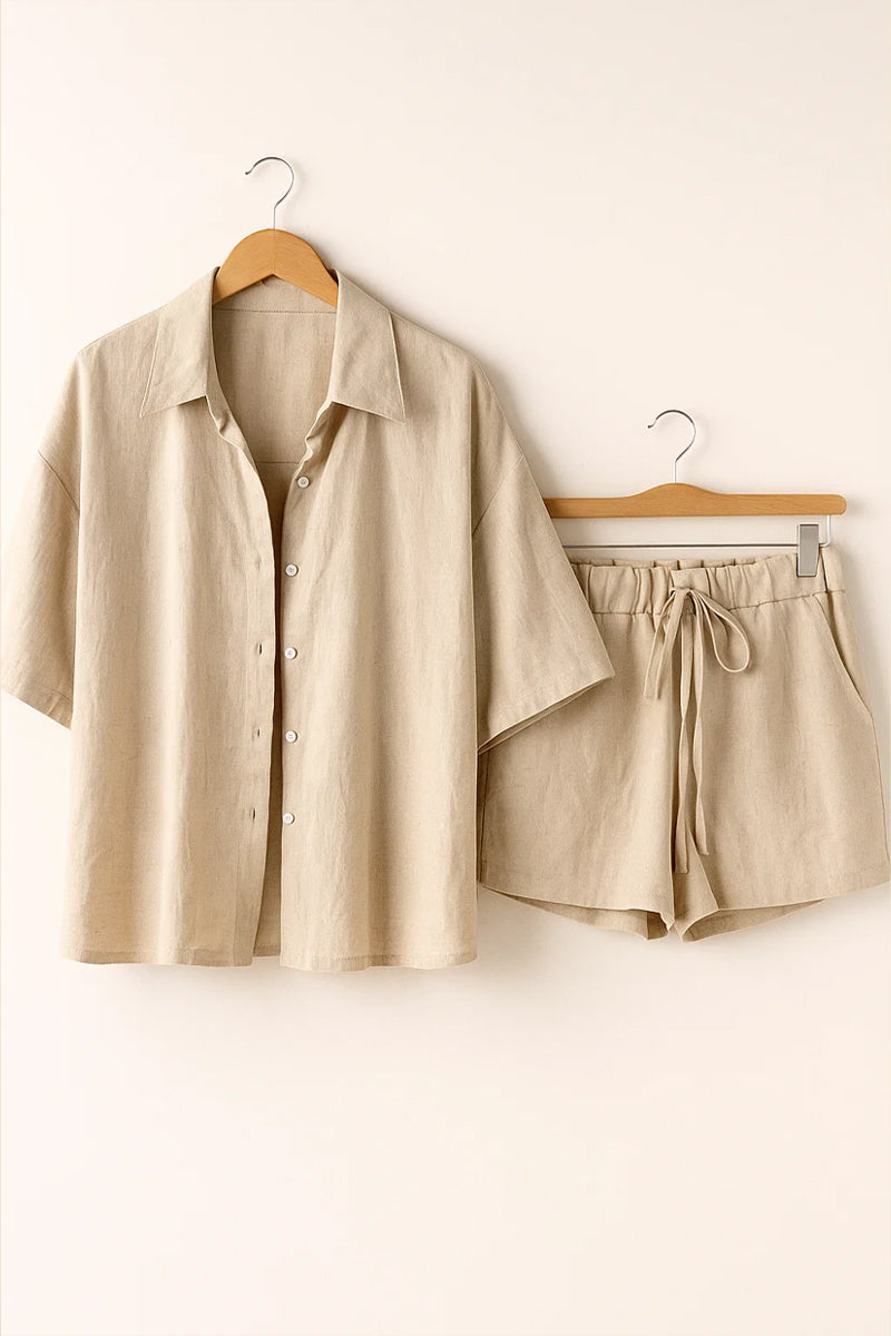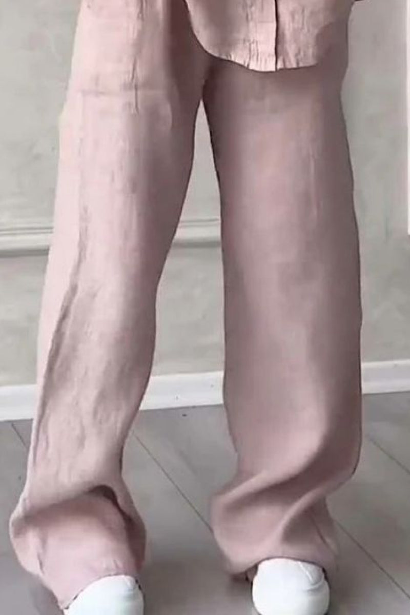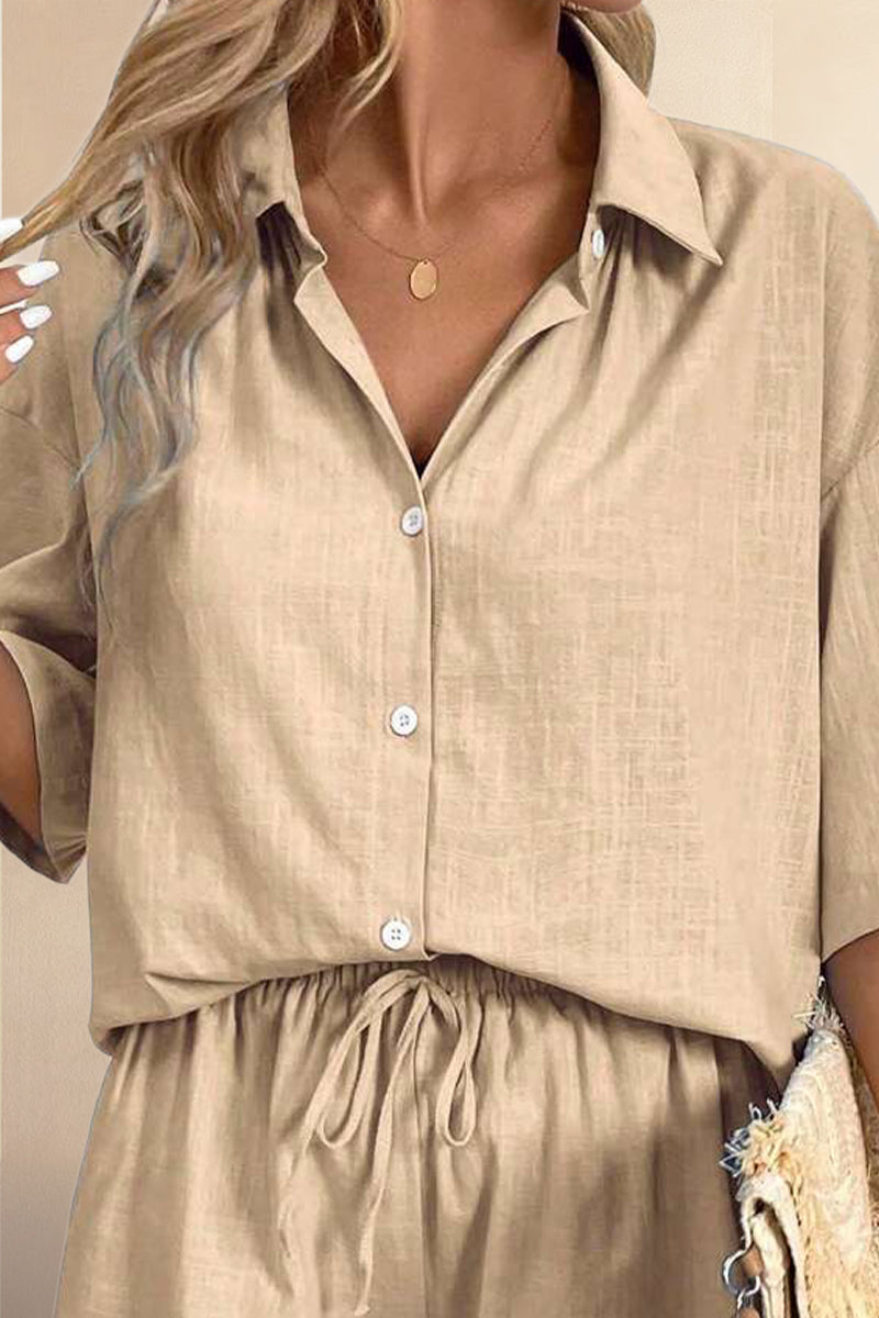 Linen and Cotton Loose Floral Short Sleeves Two-Piece Set