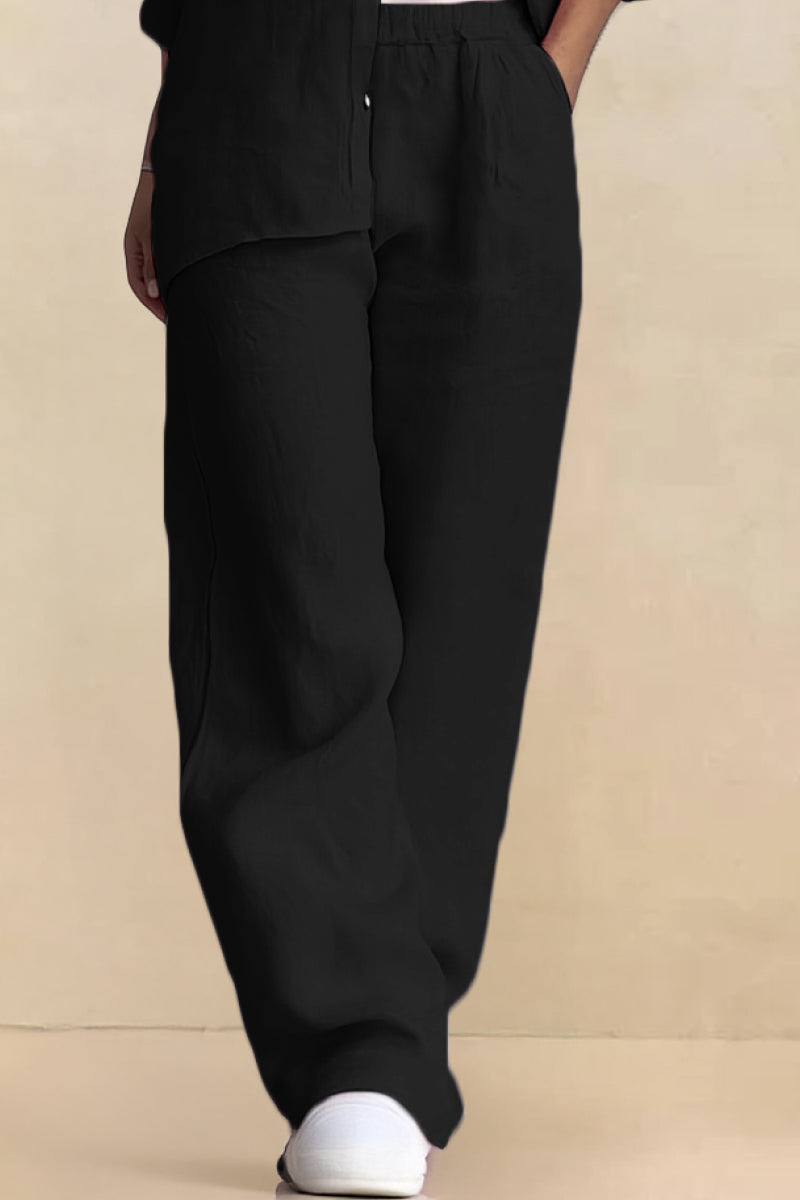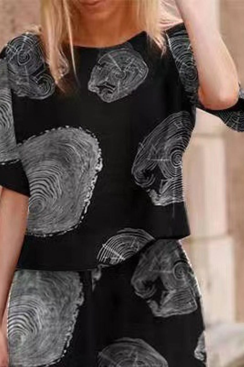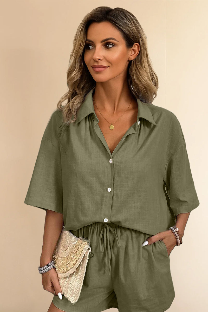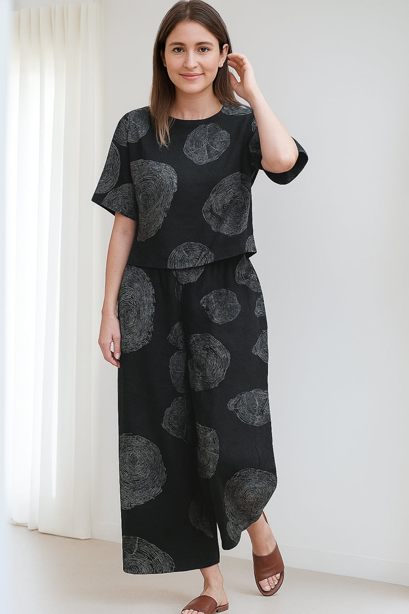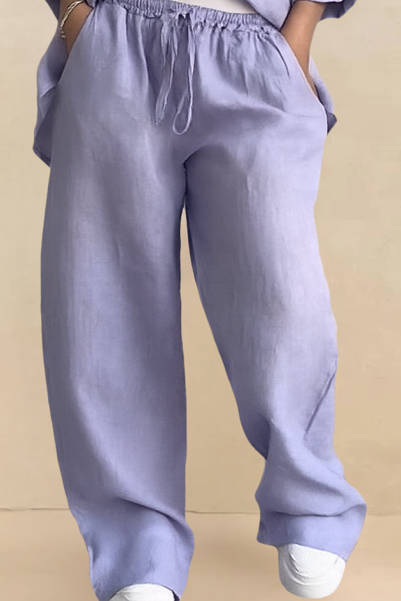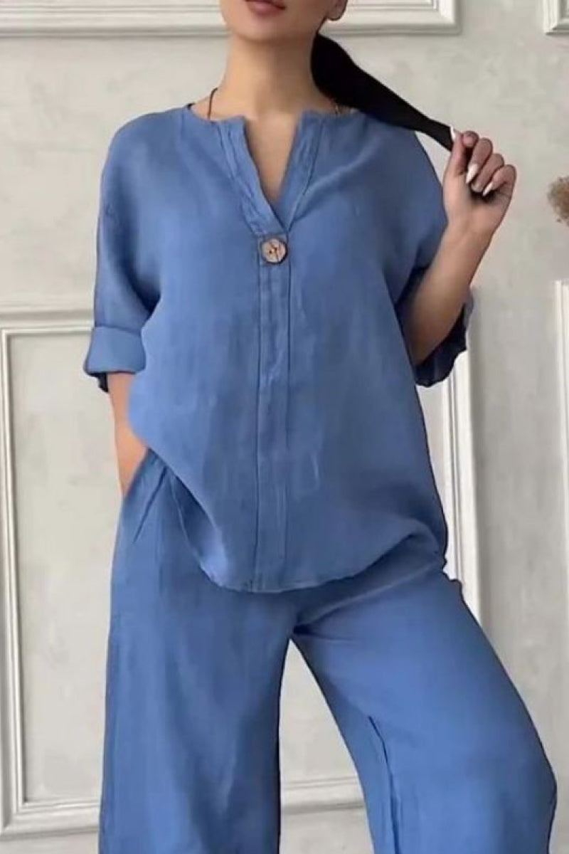 Linen and Cotton Loose Floral Short Sleeves Two-Piece Set