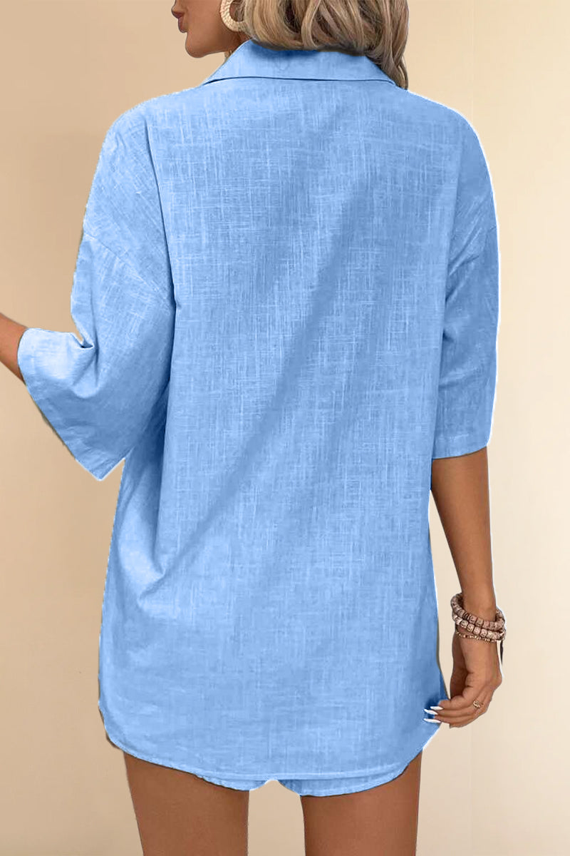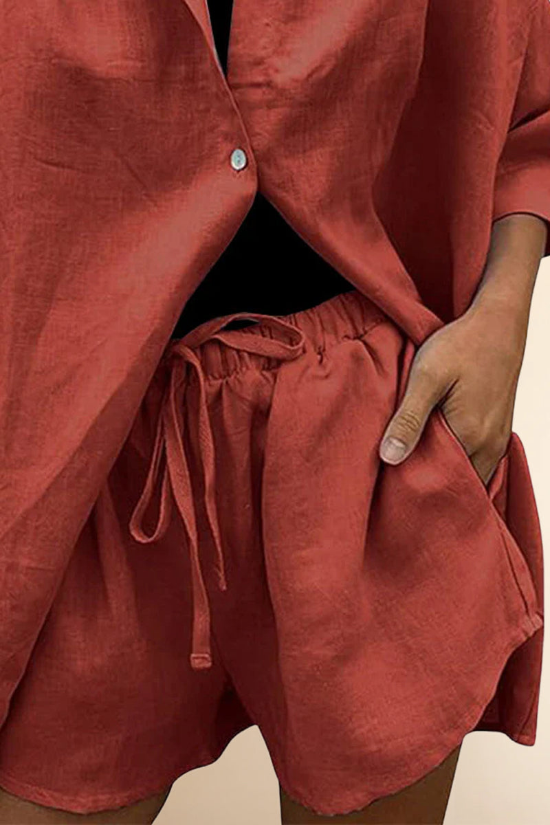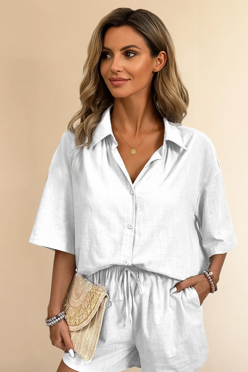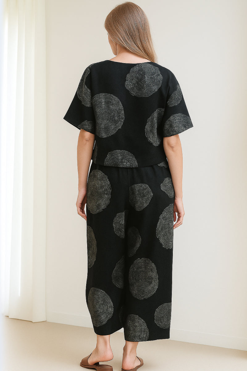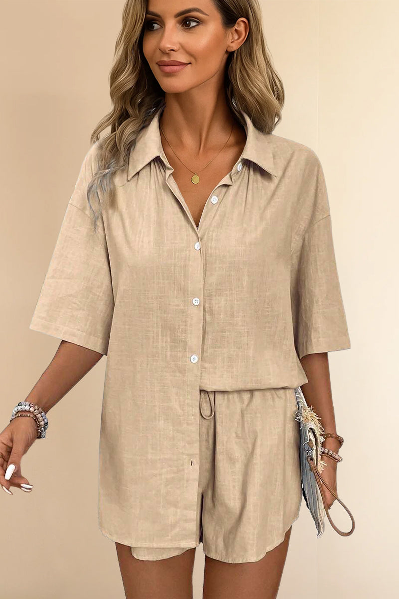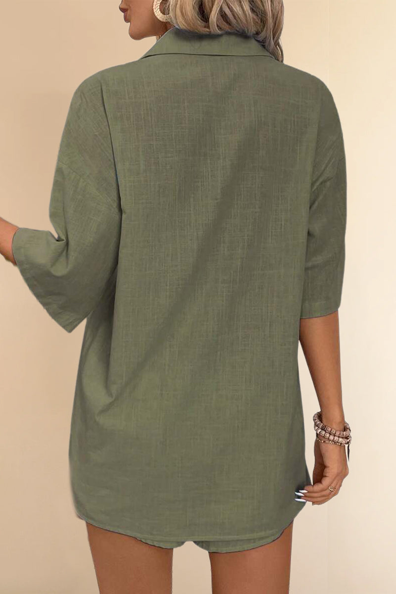 Linen and Cotton Loose Floral Short Sleeves Two-Piece Set