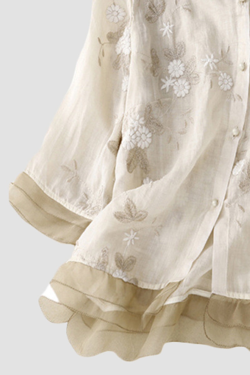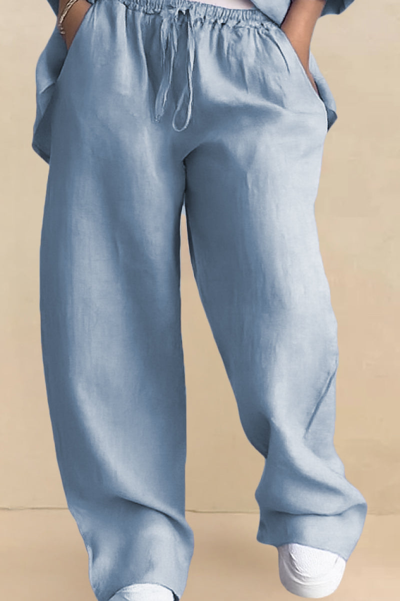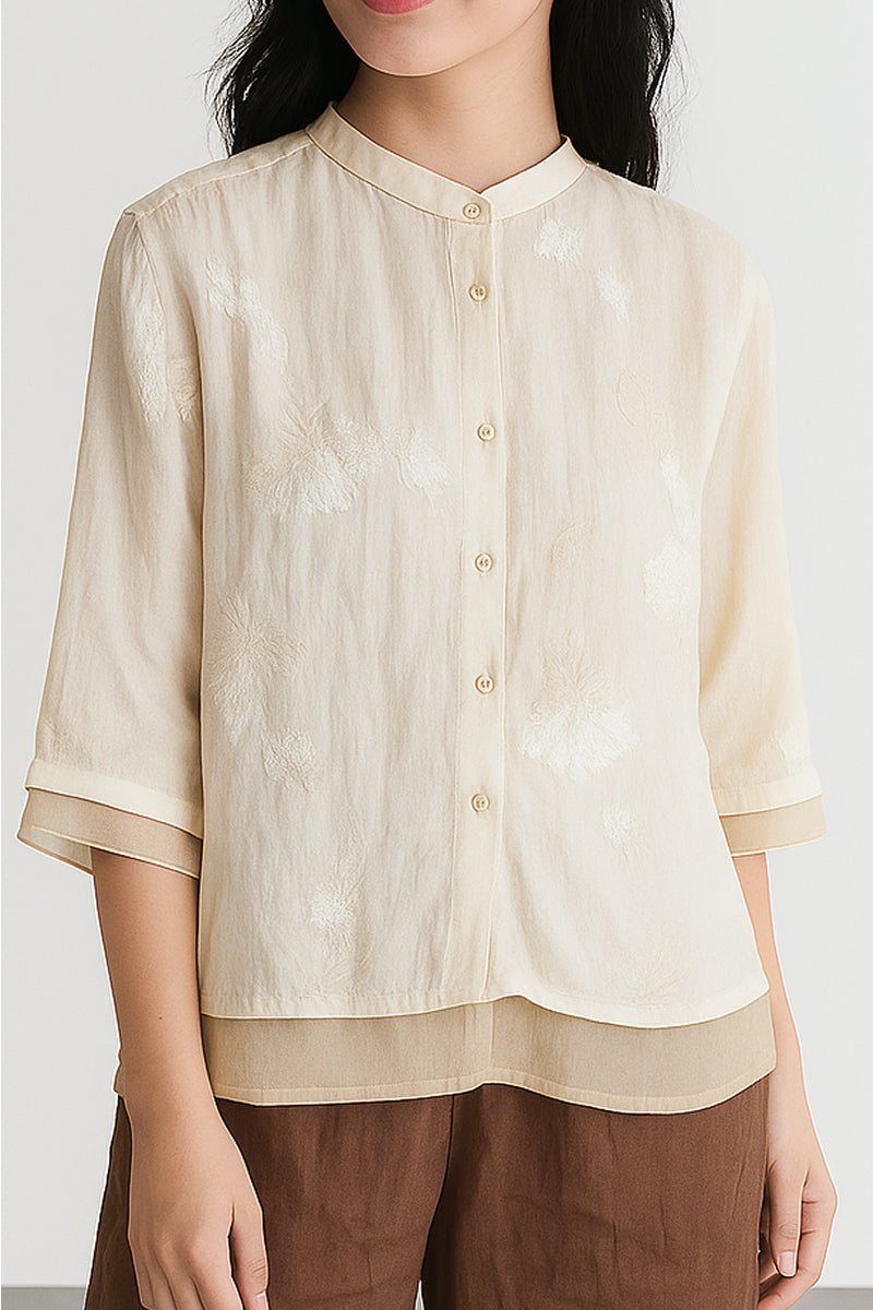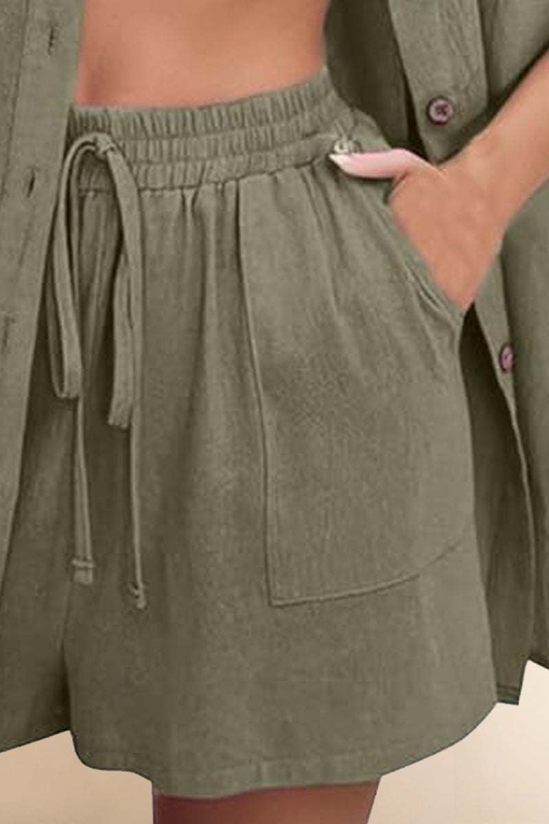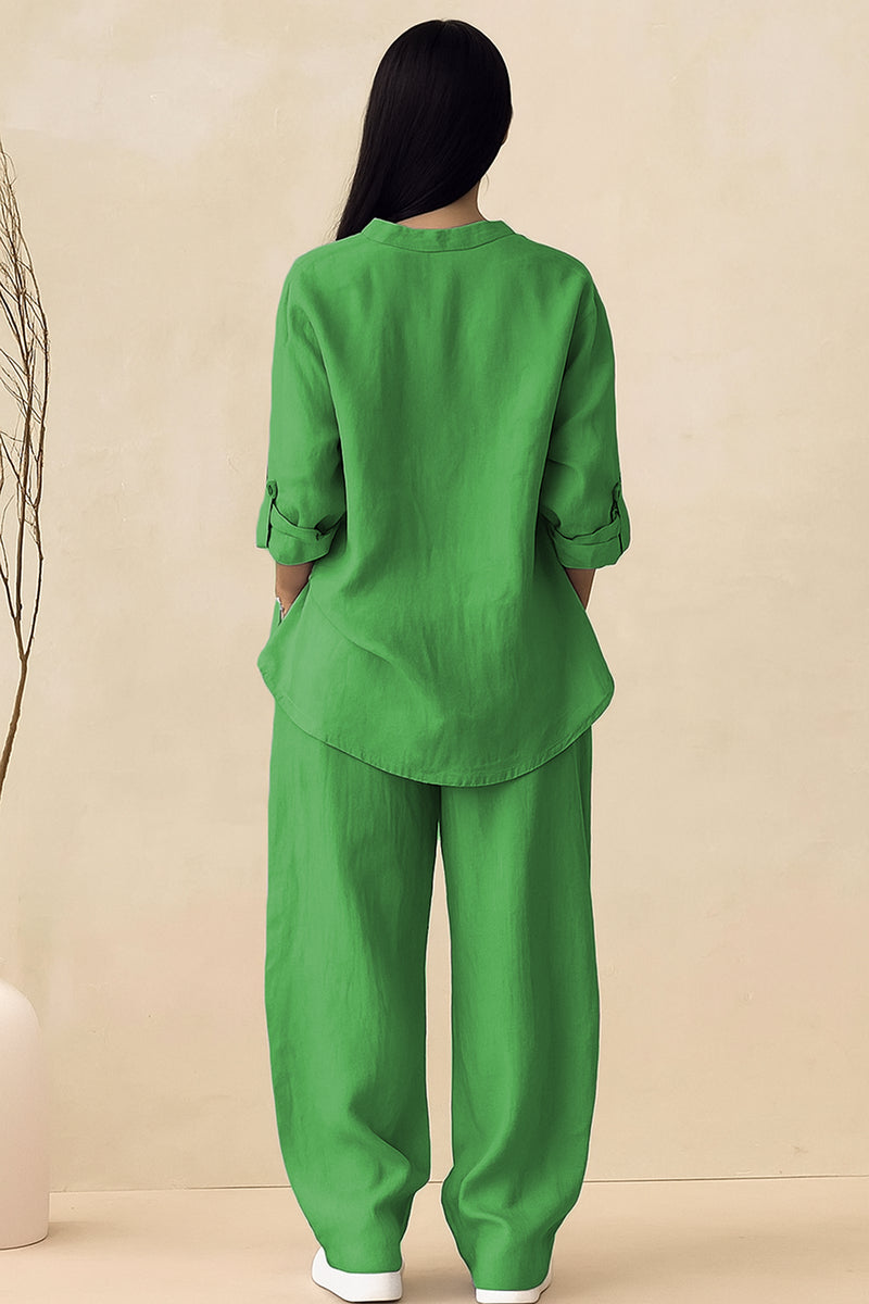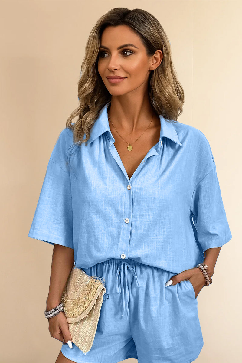 Linen and Cotton Loose Floral Short Sleeves Two-Piece Set