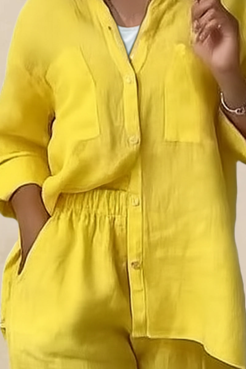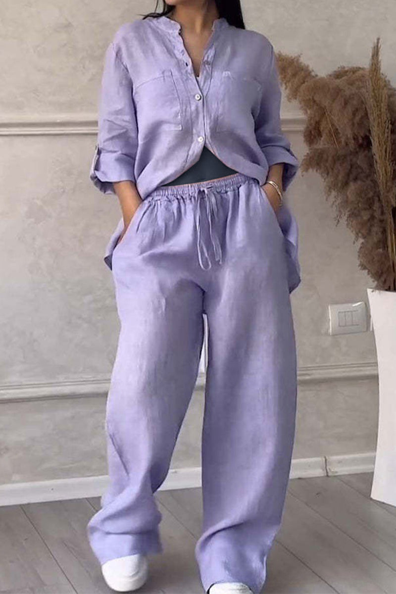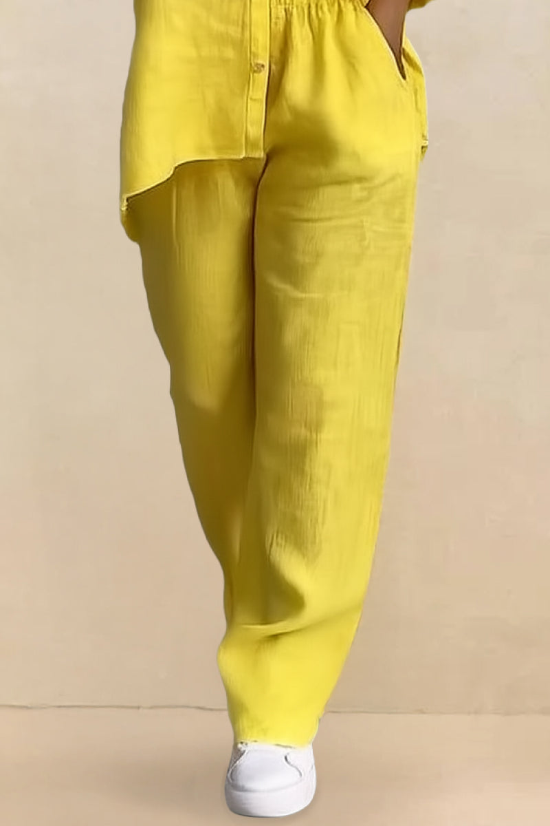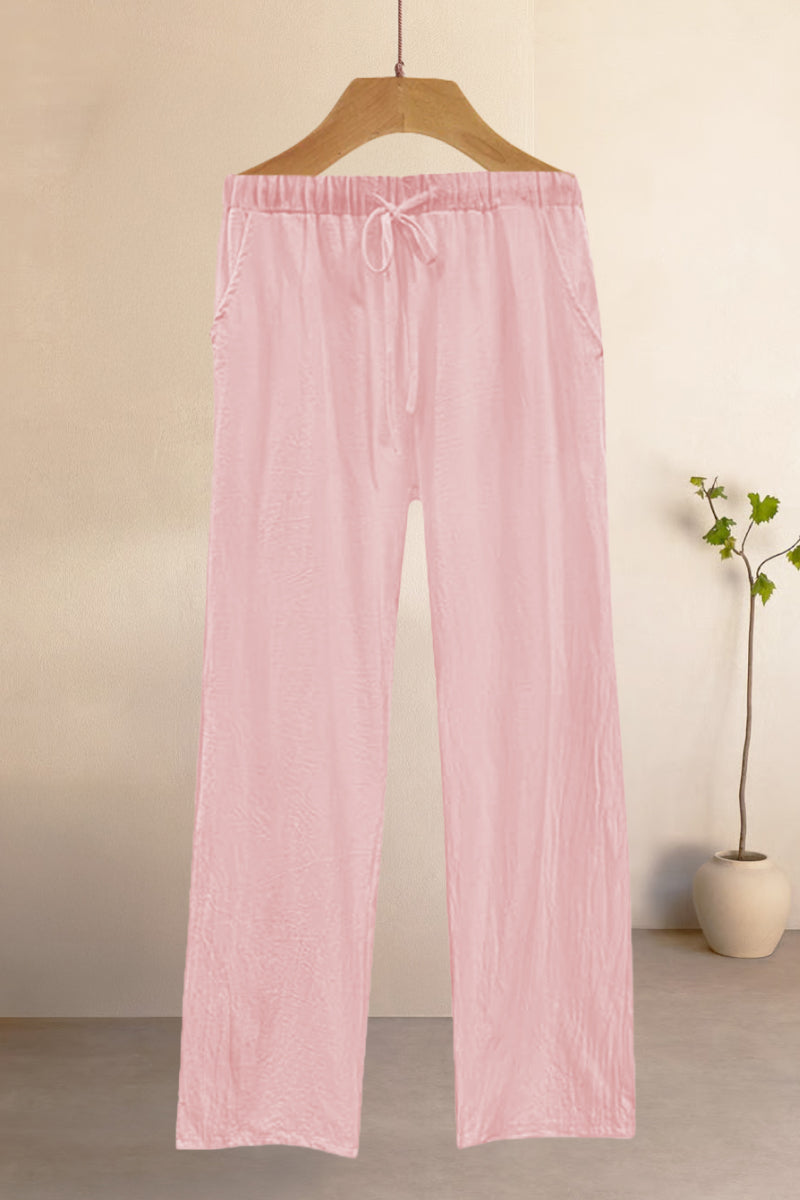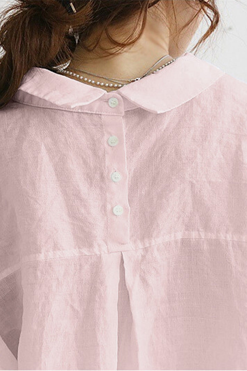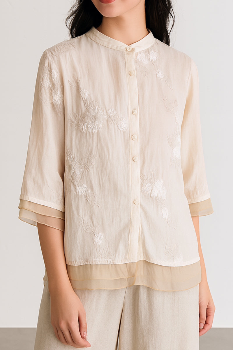 Linen and Cotton Loose Floral Short Sleeves Two-Piece Set
