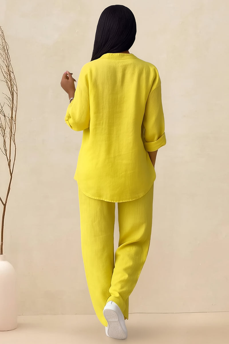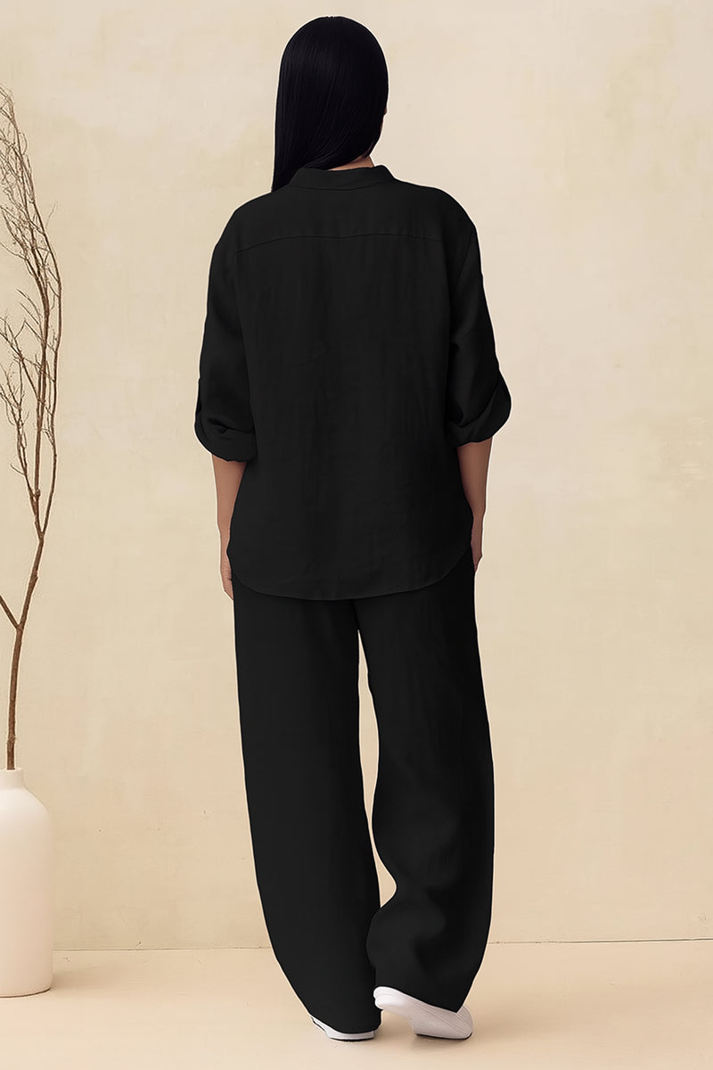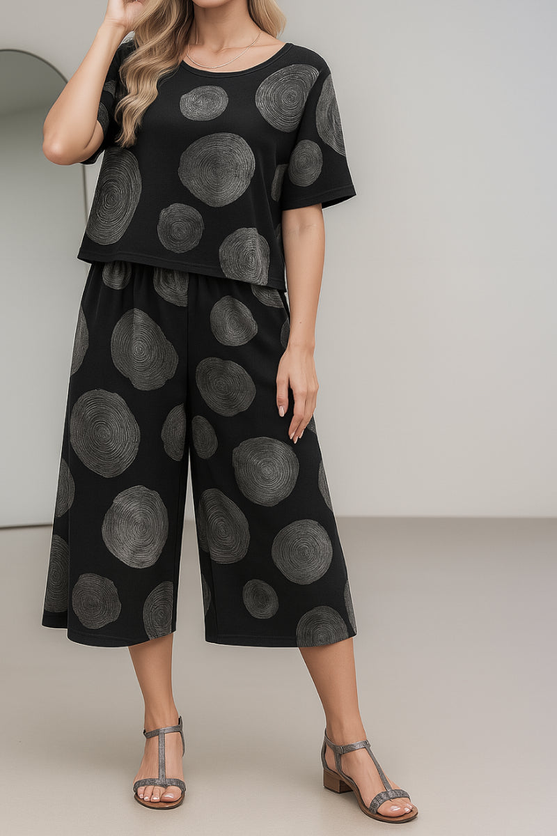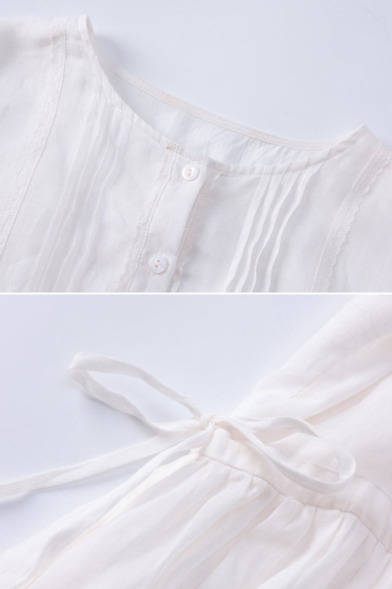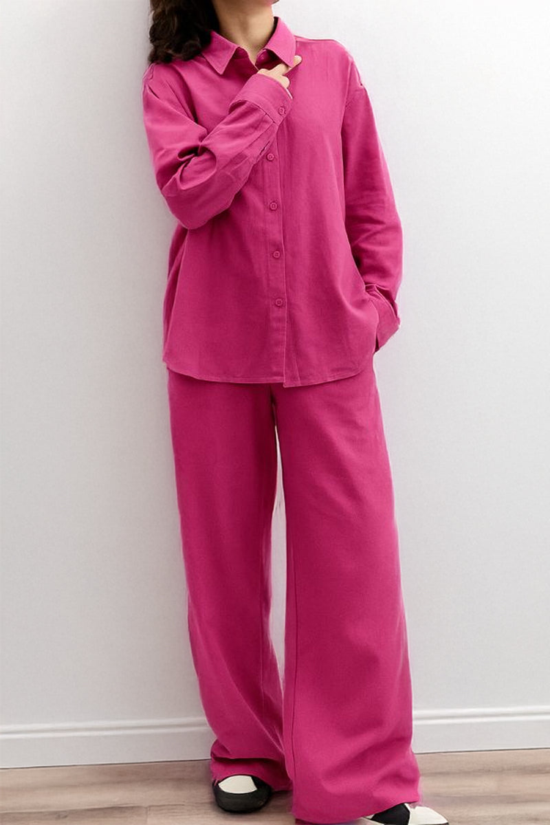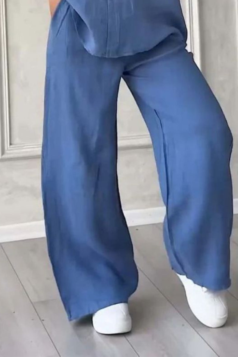 Linen and Cotton Loose Floral Short Sleeves Two-Piece Set