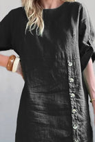 This 100% cotton dress feels like linen but without all the usual hassles.