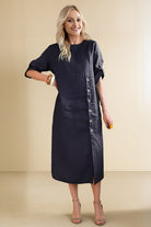 Our dress runs slightly relaxed for comfort. For a more fitted look, we recommend sizing down. Check our detailed size chart for accurate measurements.