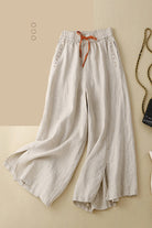 • Relaxed-fit, wide-leg trousers with elastic waistband and subtle side detail